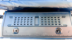 The side gullwing doors are constructed from rugged extruded aluminum — not thin sheet panels — providing the strength to mount heavier recovery gear and handle daily use without flex. Each topper is compatible with modular accessories such as interior side MOLLE boxes, 270° awnings, and more. On larger 8-ft trucks, dual side MOLLE boxes offer even greater storage and versatility for work or adventure.